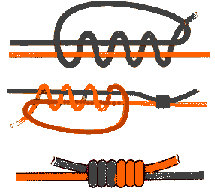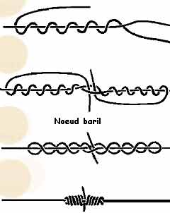 par un noeud de pêcheur simple. Ce noeud est d'ailleurs celui